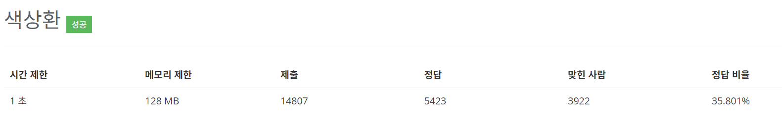 | 색 \ 총 색개수 | 1 | 2 | 3 | 4 | 5 | 6 | 7 |