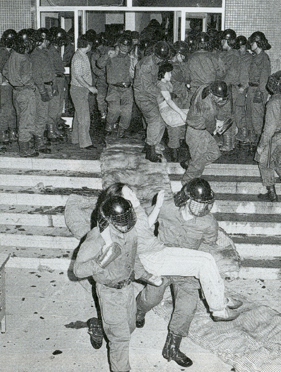 1979년 8월 11일 새벽 2시에 이 '101호 작전'이 실행된다. 고가사다리차, 물탱크차, 조명용 소방차 등을 동원했다. 1,200명의 경찰기동대가 무려 정당의 당사에 진입해 조합원들과 신민당 국회의원, 당원, 기자들에게 폭력을 가하고 끌어냈다. 그 시간은 30분이 채 걸리지 않았다고 한다. 이 과정에서 김경숙이 신민당사 건물에서 추락했다. 그녀의 나이 21살이었다.