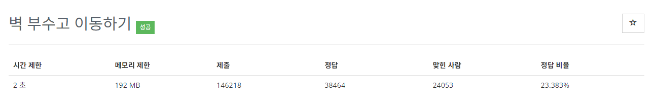 만약에 이동하는 도중에 한 개의 벽을 부수고 이동하는 것이 좀 더 경로가 짧아진다면, 벽을 한 개 까지 부수고 이동하여도 된다.