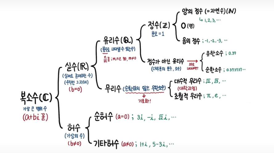 사원수라는 개념도 복소수의 상위 집합으로 있다고 한다. 사원수는 허수 $i$와는 다르면서도 제곱하면 $i$와 동일하게 $\sqrt{-1}$가 된다. 허수 $i$를 3차원 공간으로 확장한 개념인 듯 하다. 프로그래밍에서 3D 그래픽에서 활용되고 있다고 한다. GPU, 인공지능 관련 메모리에서도 쓰인다고 한다. 3차원 공간에서의 회전변환을 행렬보다 적은 연산수로 할 수 있다고 한다.
