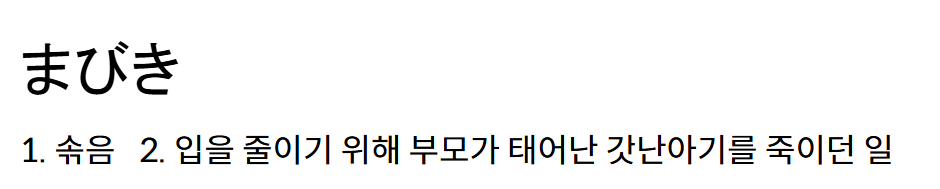 마비키(まびき)의 사전적 의미다. 어떤 작물을 키우다 쓸만하지 않은 것들을 솎아낸다는 뜻이다. 그 솎아내기가 고립된 섬나라에서 '인간'에 대해서도 적용되었다. 일본인들은 도망갈 곳이 없고 어떻게든 닫힌 공간에서 살아내야 했다. 발전한 경제에도 농민들의 생활은 그다지 나아지지 못했다.