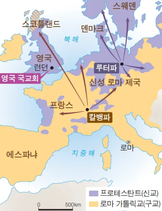 마르틴 루터(Martin Luther)가 비텐베르크 대학교 교회 정문에 붙인 95개조 반박문(1517)을 시작으로 독일과 유럽에서 종교개혁의 소용돌이가 일어났다. 이 소용돌이 안에서 루터파·칼뱅파·성공회 등의 프로테스탄트(개신교)가 생겼다. 구교 가톨릭의 영향을 비교적 받지 않는 북유럽, 대체로 당시 북부독일지역에서 개신교를 적극적으로 받아들였다. 이탈리아와 먼 쪽은 개신교를 받아들였다고 봐도 될 듯 하다. 바이에른 등 남부 독일에서는 가톨릭이 강했다. 여기에는 종교적 신념보다는 지정학과 그에 따른 이해관계가 얽혀 있었다.