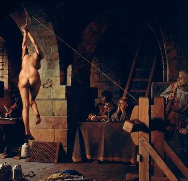 당시에는 이탈리아 법학과 캐논법을 통하여 유럽 여러 나라가 이른바 규문주의(糾問主義) 소송절차를 채택하고 있었다. 이 소송절차에는 고문이 합법화되어 있었다. 마녀는 바로 이 고문의 소산이었으며 이것을 정당화시키는 규문주의 소송절차의 당연한 결과였다. 고문은 거의 모든 마녀재판의 필수적인 하나의 요소로 등장한다.