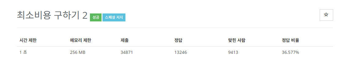 둘째 줄에는 그러한 최소 비용을 갖는 경로에 포함되어있는 도시의 개수를 출력한다. 출발 도시와 도착 도시도 포함한다.