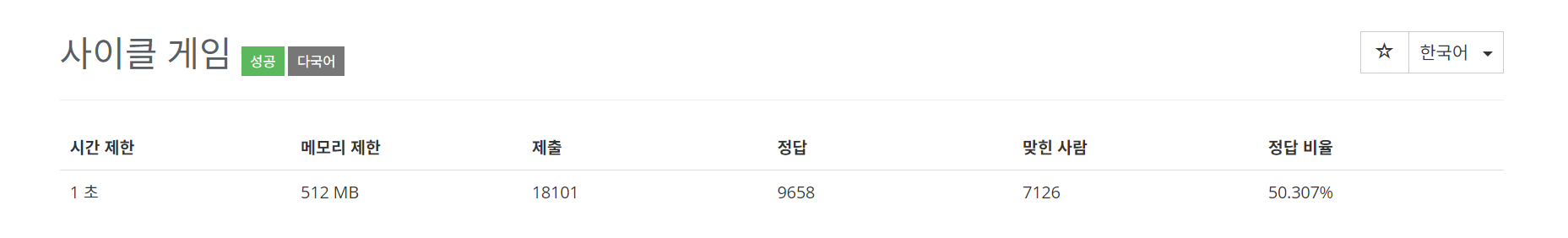 출력은 표준출력을 사용한다. 입력으로 주어진 케이스에 대해, m 번째 차례까지 게임을 진행한 상황에서 이미 게임이 종료되었다면 사이클이 처음으로 만들어진 차례의 번호를 양의 정수로 출력하고, m 번의 차례를 모두 처리한 이후에도 종료되지 않았다면 0을 출력한다.