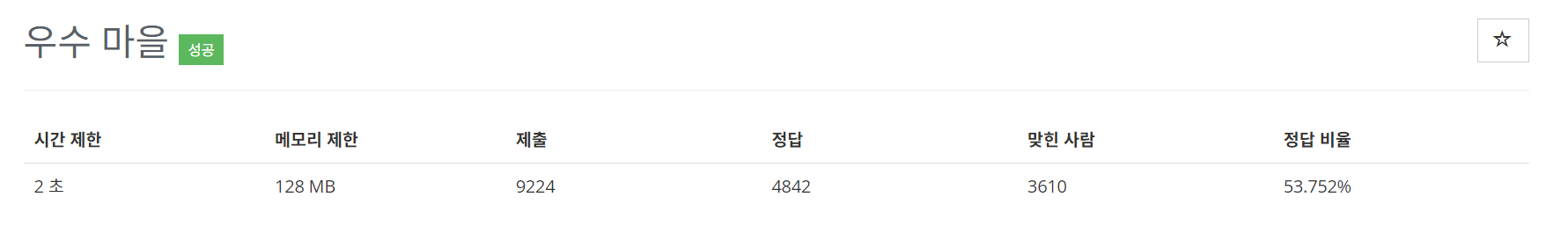 각 마을 주민 수와 마을 사이의 길에 대한 정보가 주어졌을 때, 주어진 조건을 만족하도록 '우수 마을'을 선정하는 프로그램을 작성하시오.