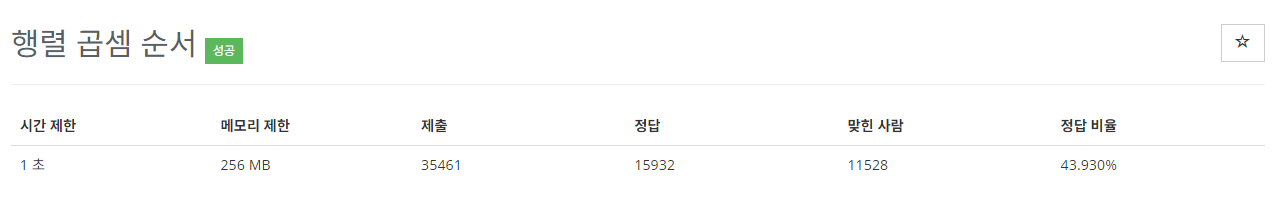 크기가 N×M인 행렬 A와 M×K인 B를 곱할 때 필요한 곱셈 연산의 수는 총 N×M×K번이다. 행렬 N개를 곱하는데 필요한 곱셈 연산의 수는 행렬을 곱하는 순서에 따라 달라지게 된다.