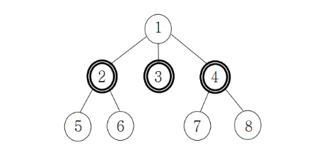 예를 들어, 8명의 사람으로 이루어진 다음 친구 관계 트리를 생각해보자. 2, 3, 4번 노드가 표현하는 사람들이 얼리 아답터라면, 얼리 아답터가 아닌 사람들은 자신의 모든 친구가 얼리 아답터이기 때문에 새로운 아이디어를 받아들인다.