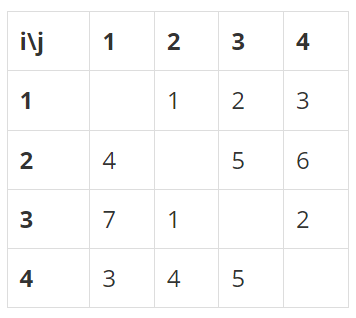 첫째 줄에 N(4 ≤ N ≤ 20, N은 짝수)이 주어진다. 둘째 줄부터 N개의 줄에 S가 주어진다. 각 줄은 N개의 수로 이루어져 있고, i번 줄의 j번째 수는 Sij 이다. Sii는 항상 0이고, 나머지 Sij는 1보다 크거나 같고, 100보다 작거나 같은 정수이다.